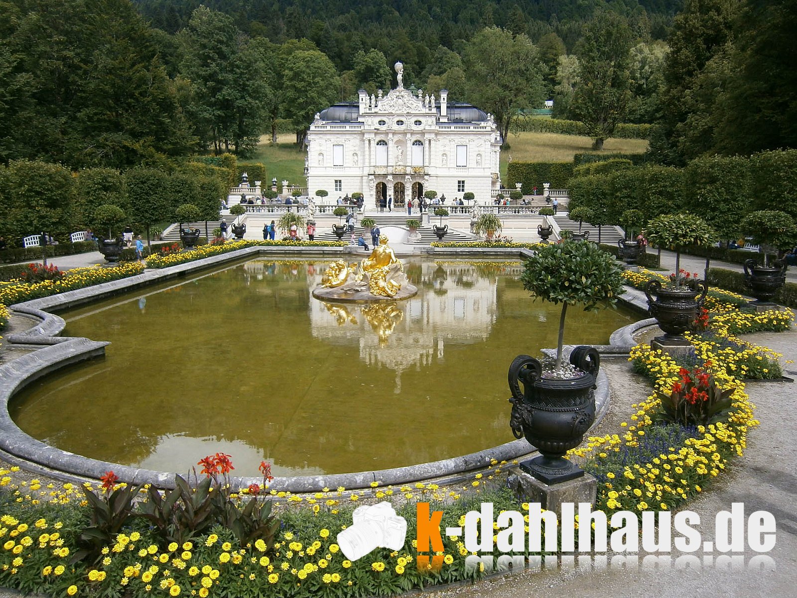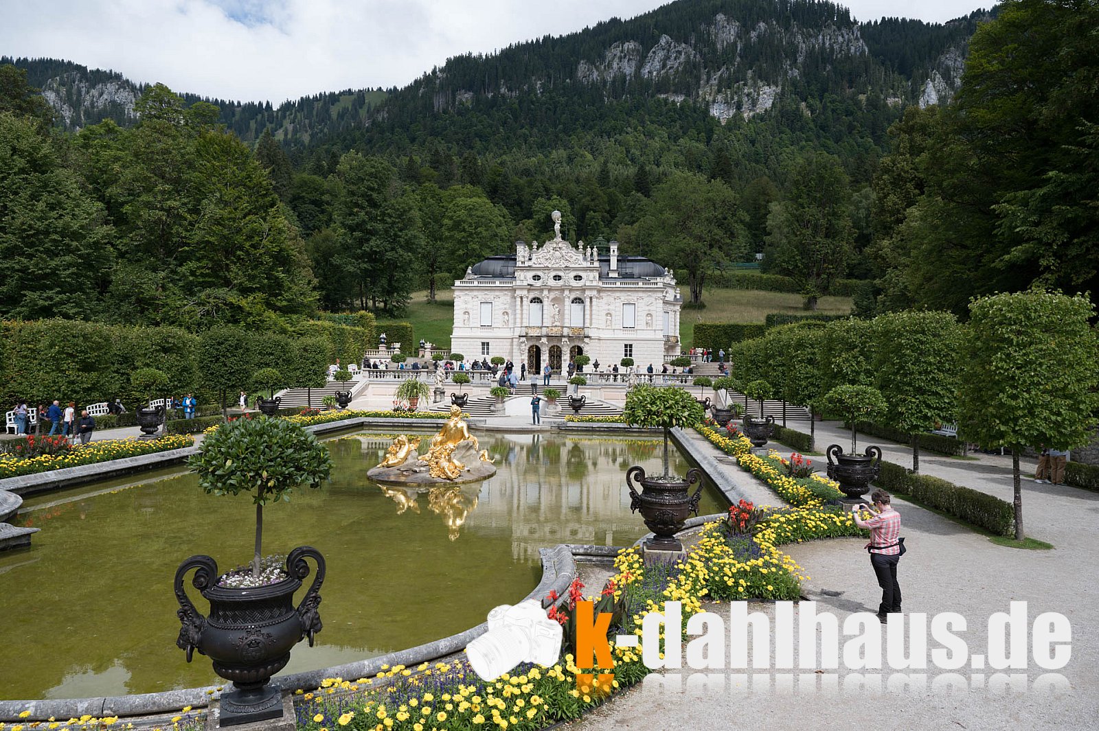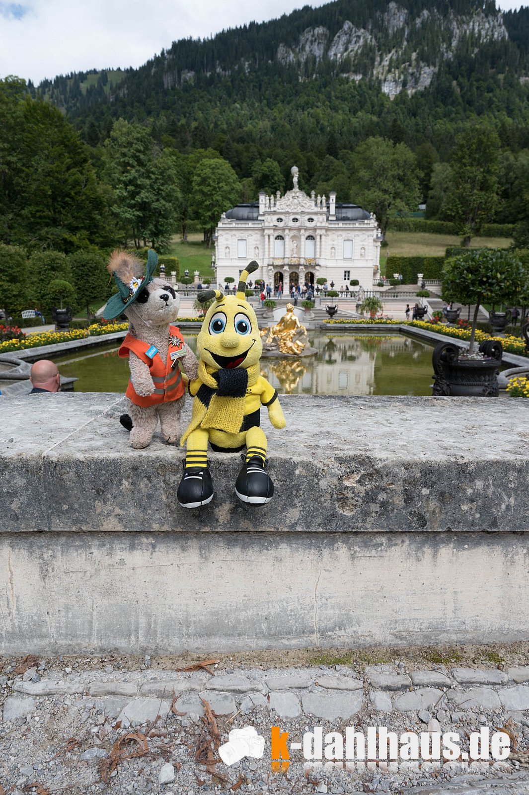 Blauer Himmel ... Juuuchhuuuu ... . Wir wandern im Tal nach Schloss Linderhof, einer „königlichen Villa“ des bayerischen Königs Ludwig II. Bei dem Wetter hätte ich gerne Fernsicht genossen, aber das Studium der Architektur hatte auch etwas.